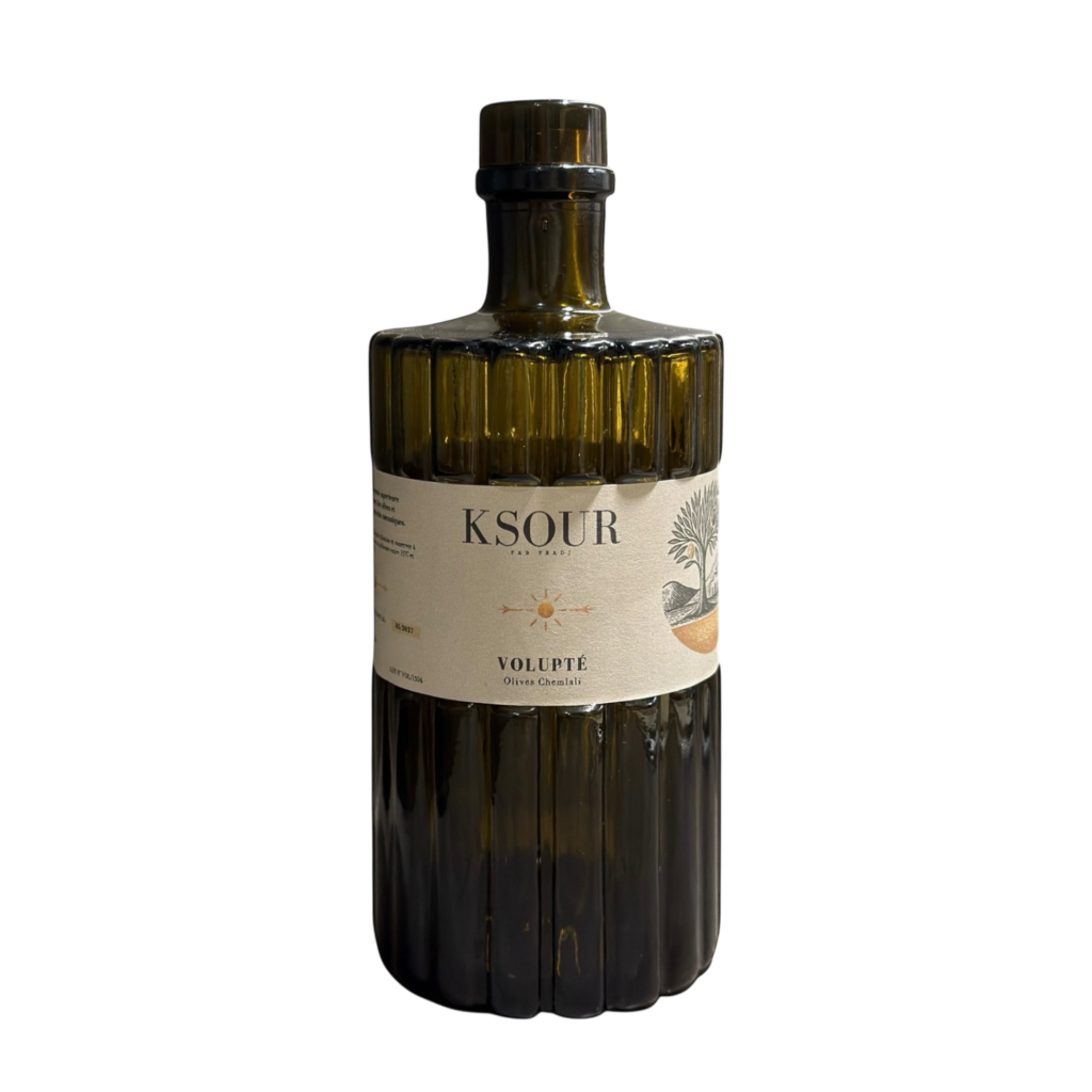 Issue d'olives Chemlali cueillies à juste maturité, Volupté exprime l'élan premier de la terre tunisienne. Fraîche et lumineuse, elle déploie des notes végétales franches, légèrement herbacées, portées par une amertume fine. Une huile vive, sincère, qui réveille les sens sans jamais les brusquer.